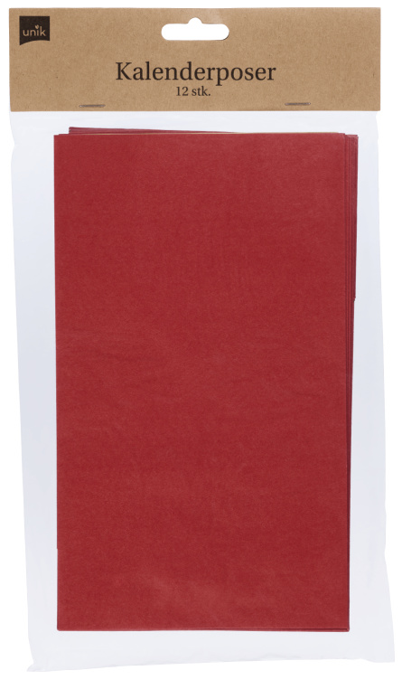 Kalenderposer, rød, 12 stk, str. 14*24*8 cm. FSC®-sertifisert produkt og emballasje.