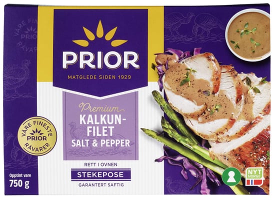Kalkunfilet Salt&Pepper 750g Prior fra Prior er et produkt innen Kylling og fjærkre, Kalkun. Produktet er tilgjengelig hos Joker til en pris av 235.00 kr. Vekten er 750 g. Produktet leveres av Nortura sa p. Produktet ble første gang registrert 9.1.2022 og sist oppdatert 14.3.2026. Prisen har holdt seg stabil på 235.00 kr.