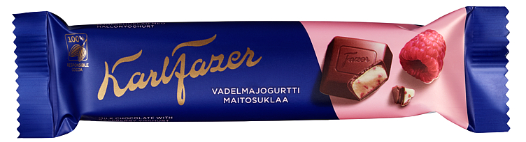 socker, vegetabiliskt fett (palm), helmjölkspulver/sødmælkspulver/tørrmelk, kakaosmör, kakaomassa, kärnmjölkspulver/kærnemælkspulver, vasslepulver (av mjölk)/vallepulver (fra mælk)/mysepulver (fra melk ), yoghurtpulver, emulgeringsmedel (lecitin, bl.a. soja ), maltodextrin, aromer (bl.a. hallon/hindbær/bringebær), surhetsreglerande medel (E330) , torkade hallon/hindbær/bringebær (0,1%), modifierad potatisstärkelse/stivelse