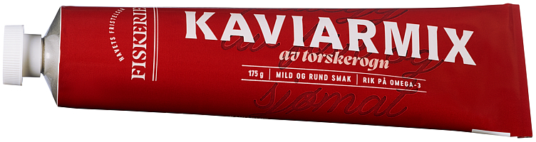 Rapsolje (49 %), røkt sukkersaltet torskerogn (torskerogn, salt, sukker) (30 %), vann (11 %),