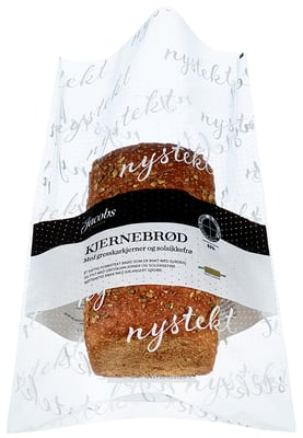 Jacobs Utvalgte Kjernebrød er bakt i Norge. Et saftig brød bakt med surdeig, fylt med gresskarkjerner og solsikkefrø.