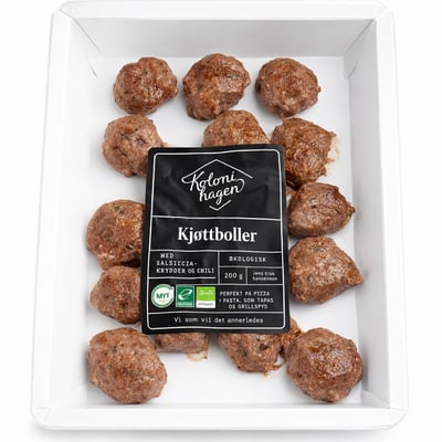 Kjøttboller fra Kolonihagen Vekten er 200 g. Produktet leveres av Jens Eide AS. Produktet ble første gang registrert 27.3.2026 og sist oppdatert 27.3.2026.