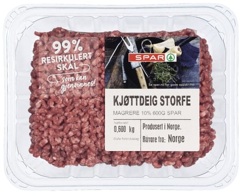 Kjøttdeig Storfe Magrere 10% 600g Spar