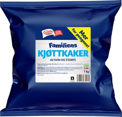 Kjøttkaker Familiens 1kg Gilde fra Gilde er et produkt innen Kjøtt, Kjøttkaker. Produktet er tilgjengelig hos SPAR til en pris av 139.00 kr. Produktet inneholder følgende allergener: Melk. Produktet leveres av Nortura sa g. Produktet ble første gang registrert 11.4.2023 og sist oppdatert 16.7.2023. Prisen har holdt seg stabil på 139.00 kr.