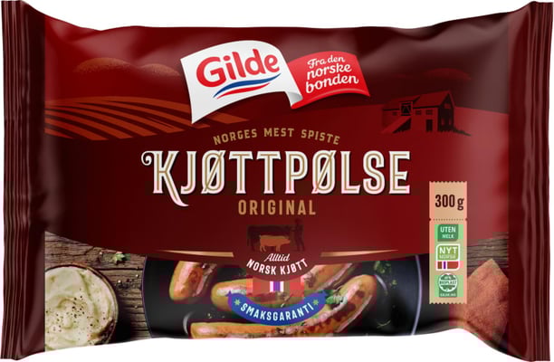 Kjøttpølse Original 300g Gilde fra Gilde er et produkt innen Kjøtt, Pølser, Middagspølse. Produktet er tilgjengelig hos SPAR til en pris av 46.90 kr. Produktet leveres av Nortura sa g. Produktet ble første gang registrert 9.1.2022 og sist oppdatert 3.8.2023. Prisen har holdt seg stabil på 46.90 kr.
