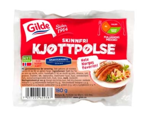 Kjøttpølse Skinnfri 180g Gilde