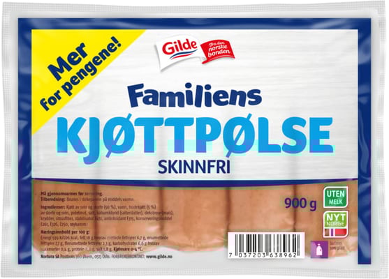 Kjøttpølse Skinnfri 900g Gilde