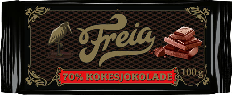 Freia Kokesjokolade 70% er kokesjokoladen med stor K. Med hele 70% kakao får sjokoladesmaken virkelig stå i fokus. Du bør velge denne kraftige varianten når du ønsker en tydelig smak av mørk sjokolade. Passer perfekt når kaken skal nytes sammen med en kopp kaffe. Les om COCOA LIFE på www.freia.no/baerekraft