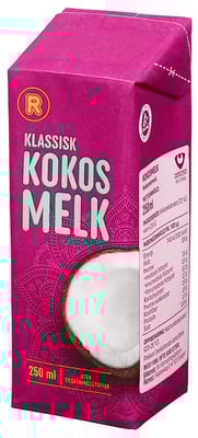 Kokosmelk 250 ml fra REMA 1000 er et produkt innen Middagstilbehør, Kokosmelk. Produktet er tilgjengelig hos Oda til en pris av 14.00 kr. Vekten er 250 ml. Produktet leveres av Rema 1000. Produktet ble første gang registrert 9.1.2022 og sist oppdatert 7.10.2023. Prisen har endret seg fra 14.60 kr til 14.00 kr over tid.