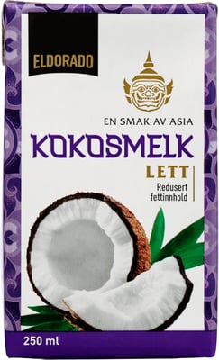 Kokosmelk Lett 250ml Eldorado fra Eldorado er et produkt innen Middagstilbehør, Kokosmelk. Produktet er tilgjengelig hos Joker til en pris av 11.90 kr. Vekten er 250 ml. Produktet leveres av Unil. Produktet ble første gang registrert 9.1.2022 og sist oppdatert 6.10.2023. Prisen har holdt seg stabil på 11.90 kr.