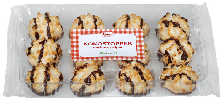Kokostopper m/Chocostriper 12stk 200g Vekten er 0.2 kg. Produktet inneholder følgende allergener: Egg, Soya. Produktet leveres av CALAS AS. Produktet ble første gang registrert 11.6.2023 og sist oppdatert 6.9.2023.