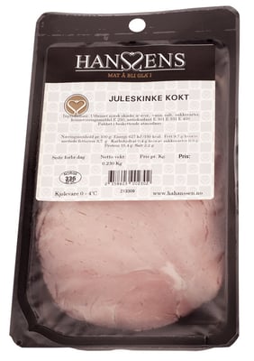 Kokt Juleskinke Sk 250g Hanssens fra Hanssens Vekten er 0.25 kg. Produktet leveres av H A HANSSEN A/S. Produktet ble første gang registrert 11.6.2023 og sist oppdatert 6.9.2023.