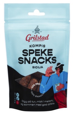 Kompis Spekesnacks Sicilia 55 g fra Grilstad er et produkt innen Pålegg & frokost, Spekemat, Spekepølser. Produktet er tilgjengelig hos Oda til en pris av 33.00 kr. Vekten er 55 g. Produktet leveres av Grilstad AS. Produktet ble første gang registrert 9.1.2022 og sist oppdatert 6.10.2023. Prisen har endret seg fra 32.90 kr til 33.00 kr over tid.