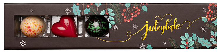 Konfekt 6 Biter Eske Juleglede fra Sjokoladefryd¤NYHET 2 Vekten er 65 g. Produktet inneholder følgende allergener: Melk, Soya. Produktet leveres av JENTENEPAATUNET AS. Produktet ble første gang registrert 11.6.2023 og sist oppdatert 6.9.2023.