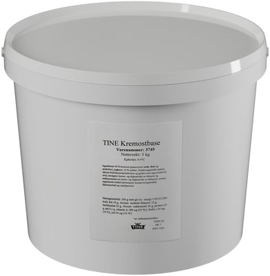 Kremostbase Spann 5kg Tine fra TINE Vekten er 5 kg. Produktet inneholder følgende allergener: Melk. Produktet leveres av TINE SA. Produktet ble første gang registrert 11.6.2023 og sist oppdatert 6.9.2023.
