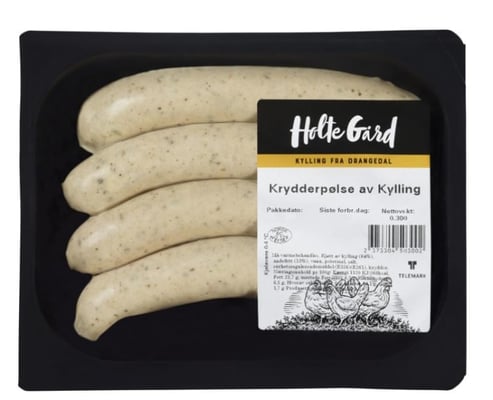 Krydderpølse 280g Holte Gård fra Holte gård er et produkt innen Kjøtt, Pølser, Spesialpølser. Produktet er tilgjengelig hos Meny til en pris av 69.00 kr. Produktet leveres av Holte gård. Produktet ble første gang registrert 10.1.2022 og sist oppdatert 3.8.2023. Prisen har holdt seg stabil på 69.00 kr.