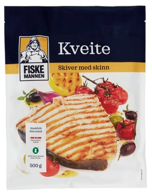 Kveite i skiver, med skinn. Kveite er rask å tilberede, og passer til både hverdag og fest. Det hvite, faste fiskekjøttet kan stekes, ovnsbakes eller grilles. Serveres gjerne med smeltet urtesmør, potetpuré og et dryss gressløk.