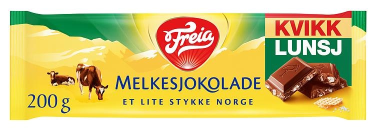 Kvikk Lunsj Melkesjokolade 200 g fra Freia Produktet er tilgjengelig hos Oda til en pris av 41.90 kr. Vekten er 200 g. Produktet leveres av Mondelez Norge AS. Produktet ble første gang registrert 9.1.2022 og sist oppdatert 7.10.2023. Prisen har holdt seg stabil på 41.90 kr.