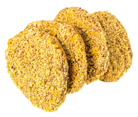 67% råvare av kylling fra Ytterøy, (47 % maskinelt utbeinet kjøtt, 20% skinn), potetmel, vann, breadcrumb ( rice flour, maize flour, maize starch, dextrose ( 80-90%), puffed quinoa (10-20%), rapeseed oil (1-5 %)), Dip ( maismel, maisstivelse, potetstivelse, stabilisator E415, hevemiddel E450/E415), rapsolje, salt, kavring av rismel og maisstivelse, hvitløk, løk, malt paprika, pepper grovmalt, fosfat, muskat, koriander, sitronpulver.