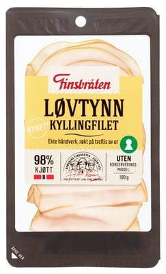 Kylling Løvtynn 100g Finsbråten fra Finsbråten er et produkt innen Pålegg & frokost, Kjøttpålegg, Påleggskinker. Produktet er tilgjengelig hos Meny til en pris av 48.60 kr. Vekten er 100 g. Produktet leveres av Finsbråten. Produktet ble første gang registrert 23.2.2023 og sist oppdatert 4.10.2023. Prisen har holdt seg stabil på 48.60 kr.
