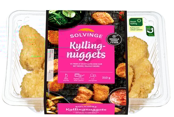 Kylling Nuggets 210g Solvinge fra solvinge Vekten er 210 g. Produktet leveres av NORSK KYLLING AS-KJØLEVARE. Produktet ble første gang registrert 11.6.2023 og sist oppdatert 6.9.2023.
