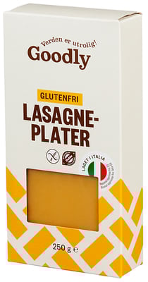 Lasagneplater Glutenfri 250g Goodly fra Goodly Vekten er 250 g. Produktet leveres av REMA 1000 NORGE AS (LEV.). Produktet ble første gang registrert 11.6.2023 og sist oppdatert 6.9.2023.