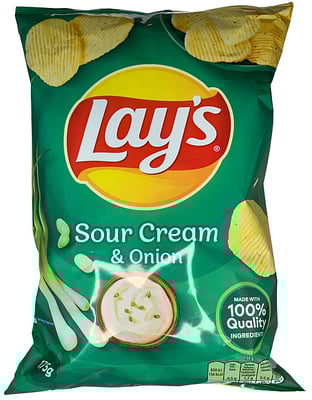 Lay's Sour Cream & Onion 175g Vekten er 175 g. Produktet inneholder følgende allergener: Melk. Produktet leveres av ROSENHOFF DAGLIGVARER JASIM MOHAMMED KERIM AUBAAD. Produktet ble første gang registrert 11.6.2023 og sist oppdatert 6.9.2023.