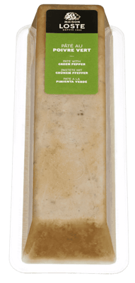 Svinekjøtt, svinefett, svinelever, mager andelever, grønne pepperkorn 3% (tilsatt surhetsregulerende middel: eddiksyre E260), vann, denaturert armagnac (armagnac, salt, naturlig aroma), eggehvite, aroma (inneholder melk), svinesvor, potetstivelse, salt, konserveringsmiddel: natriumnitritt E250, laktose, melkeproteiner, fløte (melk), salt, naturlig pepperaroma, løk, stabilisator: trifosfat E451, dekstrose, muskat, fargestoff: karminer E120, antioksidant: natriumerytorbat E316. Garnityr: vann, fargestoff: karamell E150a.Prosesseringsanalyse