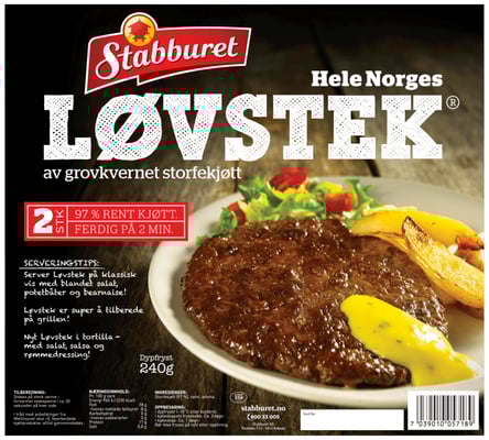 Løvstek 240g Stabburet fra Stabburet er et produkt innen Kjøtt, Løvstek. Produktet er tilgjengelig hos Joker til en pris av 91.90 kr. Vekten er 240 g. Produktet leveres av Orkla foods norge as. Produktet ble første gang registrert 9.1.2022 og sist oppdatert 6.10.2023. Prisen har holdt seg stabil på 91.90 kr.