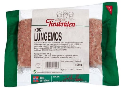 Lungemos 400g Finsbråten fra Finsbråten er et produkt innen Middag, Ferdigmåltider, Lungemos. Produktet er tilgjengelig hos Meny til en pris av 49.90 kr. Vekten er 400 g. Produktet leveres av Finsbråten. Produktet ble første gang registrert 10.1.2022 og sist oppdatert 6.9.2023. Prisen har holdt seg stabil på 49.90 kr.