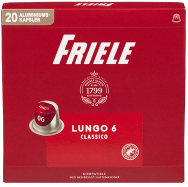 Lungo 6 Kapsler, 20 stk fra Friele er et produkt innen Drikke, Kaffekapsler. Produktet er tilgjengelig hos Oda til en pris av 66.60 kr. Vekten er 20 piece. Produktet leveres av Jacobs Douwe Egberts Norge AS Retail. Produktet ble første gang registrert 9.1.2022 og sist oppdatert 6.10.2023. Prisen har endret seg fra 65.70 kr til 66.60 kr over tid.