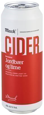 Mack Cider Jordbær&Lime 0,5l boks fra Mack Produktet er tilgjengelig hos SPAR til en pris av 41.90 kr. Produktet inneholder følgende allergener: Sulfitt. Produktet leveres av Mack ølbryggeri as. Produktet ble første gang registrert 17.2.2022 og sist oppdatert 16.7.2023.