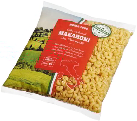 Makaroni 1kg Rema 1000 fra Rema 1000 Vekten er 1 kg. Produktet inneholder følgende allergener: Gluten. Produktet leveres av REMA 1000 NORGE AS (LEV.). Produktet ble første gang registrert 11.6.2023 og sist oppdatert 6.9.2023.