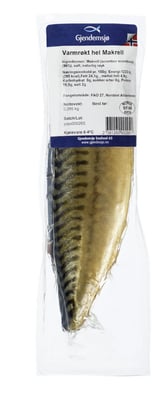 Makrell Hel Varmrøkt Gjendemsjø fra Gjendemsjø Vekten er 0.35 kg. Produktet inneholder følgende allergener: Fisk. Produktet leveres av SPESIALGROSSISTEN AS. Produktet ble første gang registrert 11.6.2023 og sist oppdatert 6.9.2023.