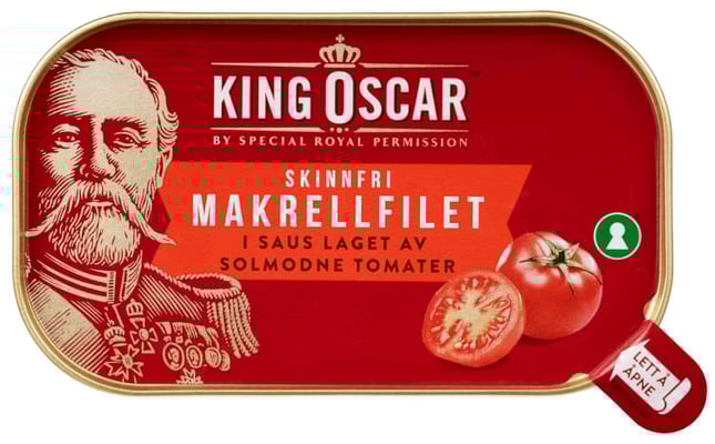 King Oscar makrellen fiskes om høsten og vinteren når fiskekvaliteten er på sitt beste og omega-3-innholdet høyest. Vår makrell er av beste kvalitet – helt uten skinn! Sausen er laget av deilige, solmodne tomater som gir mye smak. Klar til å nytes!