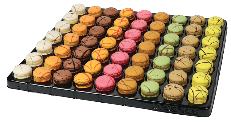 Sitron: Sukker, smør (melk), mandel pulver (nøtter), sitron puré, egg, vann, maissirup, pektin, frisk sitron, Tartrazine (E102) , emulgator: soyalecitin Bringebær: sukker, bringebær puree, mandel pulver (nøtter), smør (melk), egg, vann, fløte (melk), maismel, maissirup, pectine, sitronsyre (E330), cochineal karmin (E120), ponceau 4R (E124), Tartrazine (E102 ), paraoransje (E110), emulgator: soyalecitin Sjokolade: Fløte(melk), sukker, mandel pulver (nøtter), sjokolade (soya), egg, kakaopulver, maissirup, smør (melk), kakaosmør, pektin, cochineal karmin (E120), ponceau 4R (E124), Tartrazine (E102), paraoransje (E110) Kaffe: sukker, smør (melk), mandel pulver (nøtter), egg, fløte (melk), kaffebønner, maissirup, maltekstrakt (gluten), kaffe olje, pektin, Tartrazine (E102), paraoransje (E110), emulgator: soyalecitin Earl grey: sukker, smør (melk) mandel pulver (nøtter), egg, fløte (melk), earl grey te, maissirup, pektin, maltekstrakt (gluten), paraoransje (E110), natrium kobber klorofyllin (E141), emulgator: soyalecitin Vanilje: sukker, smør (melk), mandel pulver (nøtter), egg, fløte (melk), maissirup, pektin, vanilje, emulgator:soyalecitin Appelsin: sukker, fløte (melk), sjokolade (soya), mandel pulver (nøtter), frisk appelsin, egg, appelsinpuré, kakaosmør, vann, konsentrert appelsinjuice (sulfitt), maissirup, pektin, sitronsyre (E330), paraoransje (E110 ), Tartrazine (E102) Pasjonsfrukt: sukker, sjokolade (soya), fløte (melk), mandel pulver (nøtter), egg, pasjonsfruktpuré, maissirup, vann, kakaosmør, pektin, sitronsyre (E330), Tartrazine (E102), paraoransje (E110) Saltet karamell: sukker, smør (melk), mandel pulver (nøtter), egg, fløte (melk), salt, pektin, Tartrazine (E102), paraoransje (E110), natrium kobber klorofyllin (E141), ponceau 4R (E124), emulgator: soyalecitin