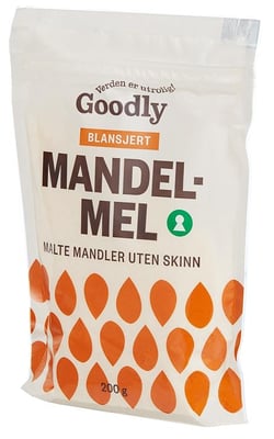 Mandelmel 200 g fra Goodly Produktet er tilgjengelig hos Oda til en pris av 42.00 kr. Vekten er 200 g. Produktet leveres av Rema 1000. Produktet ble første gang registrert 9.1.2022 og sist oppdatert 6.10.2023. Prisen har endret seg fra 40.80 kr til 42.00 kr over tid.
