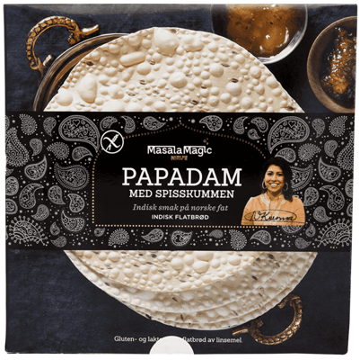 Masalamagic Papadam 125g fra MASALAMAGIC er et produkt innen Bakeri, Tørt brød, Papadam. Produktet er tilgjengelig hos Coop til en pris av 31.90 kr. Produktet leveres av MASALAMAGIC AS. Produktet ble første gang registrert 9.1.2022 og sist oppdatert 16.7.2023. Prisen har holdt seg stabil på 31.90 kr.