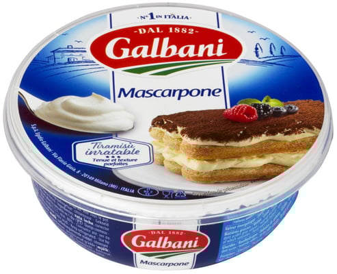Mascarpone 250gx8 Galbani fra GALBANI Vekten er 250 g. Produktet inneholder følgende allergener: Melk. Produktet leveres av LACTALIS NORGE AS. Produktet ble første gang registrert 11.6.2023 og sist oppdatert 6.9.2023.