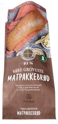 Våre Groveste Matpakkebrød er et formstekt brød som gir jevne skiver gjennom hele brødet. Brødet er bakt med hvete, rug, havre og durum. Surdeig av rug balanserer smaken og et saftig brød som er godt egnet til matpakken. VÅRE GROVESTE er en serie ekstra g