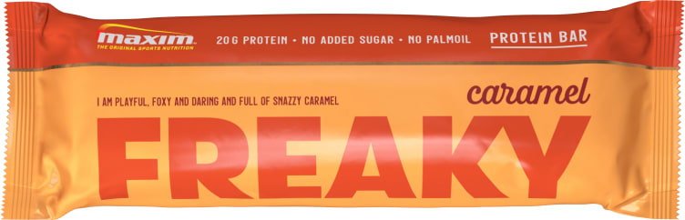 Maxim Freaky Caramel proteinbar er en spenstig bar laget med myk karamell og sjokolade. Den inneholder 20g protein, er uten tilsatt sukker og uten palmeolje. Passer etter en treningsøkt eller som snacks og mellommåltid i løpet av dagen.