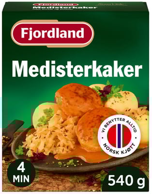 Medisterkaker er en favoritt på Østlandet. På grunn av de søte krydderne muskat og kardemomme er medisterkaker ofte en del av julemiddagen - men spises også resten av året. Vi i Fjordland benytter kun norsk kjøtt. Fjordlands medisterkaker serveres sammen med brun saus. poteter og klassisk surkål. Retten inneholder 21 % grønnsaker og er en kilde til protein.