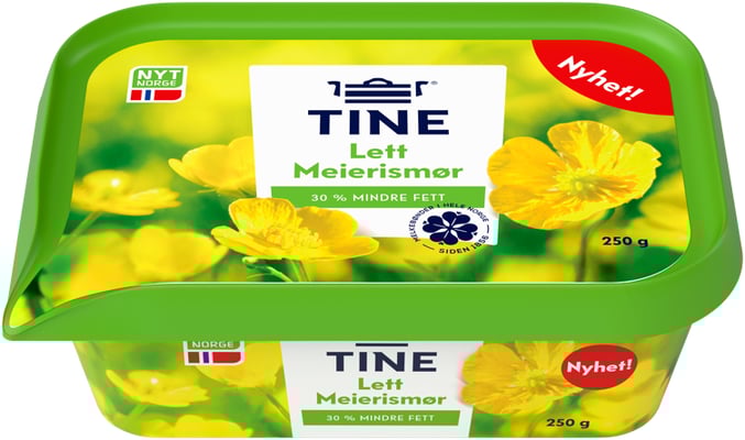 Meierismør Lett 250g Tine fra Tine Produktet er tilgjengelig hos SPAR til en pris av 35.90 kr. Produktet inneholder følgende allergener: Melk. Produktet leveres av Tine sa. Produktet ble første gang registrert 9.1.2022 og sist oppdatert 16.7.2023. Prisen har endret seg fra 34.90 kr til 35.90 kr over tid.