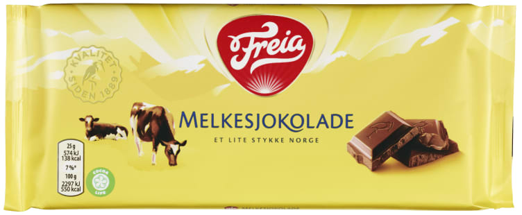 Ren Melkesjokolade av beste kvalitet fra Freia Melkejsokolade - Norges mest solgte sjokolade. Laget med melk fra norske kuer og produsert i Freia Fabrikken på Rodeløkka i hjerte av Oslo siden 1906. Et lite stykke Norge. Du kan kose deg med en rute Freia Melkesjokolade alene eller sammen med venner og familie. Passer til de fleste anledninger. Les mer om COCOA LIFE på www.freia.no/baerekraft.
