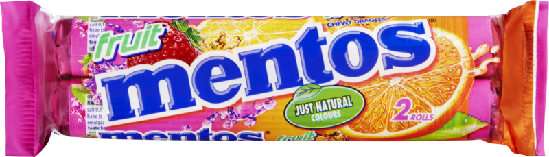 Mentos Fruit 2pk 76g fra MENTOS Produktet er tilgjengelig hos Coop til en pris av 44.90 kr. Produktet leveres av CONAXESS TRADE NORGE AS. Produktet ble første gang registrert 9.1.2022 og sist oppdatert 16.7.2023. Prisen har endret seg fra 36.90 kr til 44.90 kr over tid.