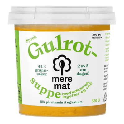 Mere Suppe Gulrotsuppe 530g fra MERE MAT er et produkt innen Middag, Supper, Gulrotsuppe. Produktet er tilgjengelig hos Coop til en pris av 67.90 kr. Produktet leveres av MERE MAT AS. Produktet ble første gang registrert 9.1.2022 og sist oppdatert 16.7.2023. Prisen har holdt seg stabil på 67.90 kr.