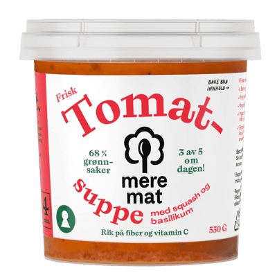 Mere Suppe Tomatsuppe 530g fra MERE MAT er et produkt innen Middag, Supper, Tomatsuppe. Produktet er tilgjengelig hos Coop til en pris av 57.90 kr. Produktet leveres av MERE MAT AS. Produktet ble første gang registrert 9.1.2022 og sist oppdatert 16.7.2023. Prisen har holdt seg stabil på 57.90 kr.