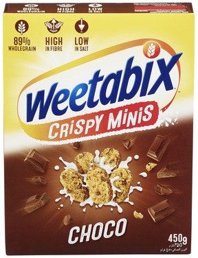 Minis choco 450 g fra Weetabix Produktet er tilgjengelig hos Oda til en pris av 67.20 kr. Produktet leveres av Jensen & Co AS. Produktet ble første gang registrert 9.1.2022 og sist oppdatert 9.8.2023. Prisen har holdt seg stabil på 67.20 kr.