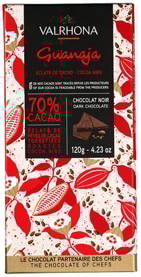 Mørk Sjokolade 70% Cocoa Nibs 120g Valrhona fra Valrhona Vekten er 120 g. Produktet leveres av A LA CARTE PRODUKTER AS. Produktet ble første gang registrert 11.6.2023 og sist oppdatert 6.9.2023.