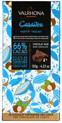 Mørksjokolade 66% Caraibe Hasselnøtt 120g Valrhona
